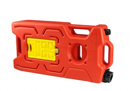 Представляет собой три канистры разного объёма, основная 10 литра, и две дополнительных на 0,35 литра. Особенно пригодится для двухтактных двигателей для которых нужно мешать масло с бензином. В большую канистру наливается бензин, а в малую емкость масло. На малой емкости присутствуют насечки дозировки.