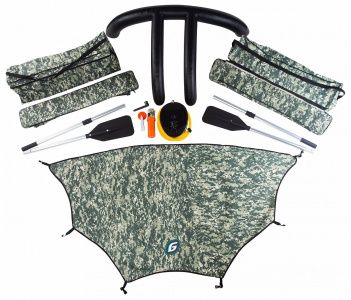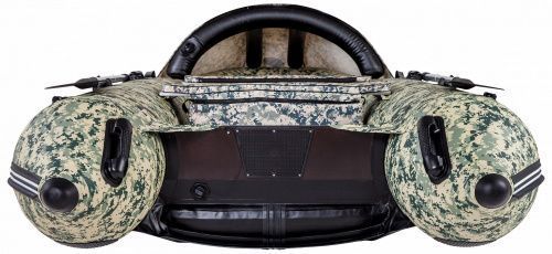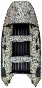 А комфортность поездке обеспечат брызгозащитный носовой тент на надувной дуге и мягкие накладки на сиденья с подседельными сумками, в которые можно сложить вещи или припасы.