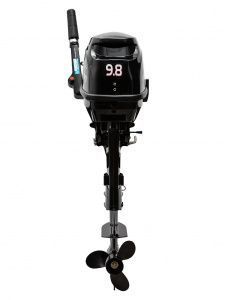 2х тактный карбюраторный лодочный мотор мощностью 9,8 л.с. Мотор имеет переднюю, заднюю передачу и нейтраль. Выхлоп мотора осуществляется под воду через винт, что делает прогулки на воде тихими и приятными. Мотор имеет режим мелководья.