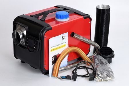 Мощность обогревателя регулируется до 5КВт. Отопитель работает на дизельном топливе и питается от 12 и 220 вольт. Устройство комплектуется удобным пультом управления с индикацией мощности, напряжения, температуры, а так же имеет пульт дистанционного управления с дальностью действия 50-70 метров.